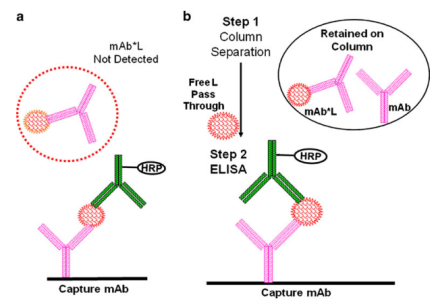 ËäÈ»¿ÉÒÔÉè¼ÆLBAÓÃÀ´ÕÉÁ¿mAbfree»òmAbtotal£¬µ«ÊÜÊÔ¼ÁÏÞÖÆ¡¢Ñù±¾Ï¡Ê͵ÈÓ°Ï죬²¢²»¿ÉÈ·¶¨¸ÃÒªÁìÊÇ·ñ½ö½ö²â¶¨mAbfree¡£Òò´Ë£¬¿ÉÒÔ½ÓÄɲⶨmAbtotalµÄÕ½ÂÔ¡£mAbtotalºÍmAbfreeµÄÆÊÎöÒªÁì¼û±í6£¬µä·¶µÄELISA¼ì²â»¨Ñù¼ûͼ2¡£