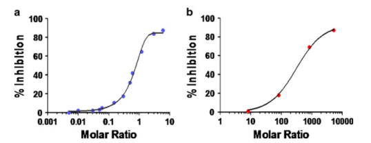 ͼ3չʾÁ˲âÊÔL¶ÔmAb×ÌÈŵÄʾÀý¡£ÒÔ²î±ðµÄĦ¶û±ÈÔ¤·õÓýLºÍmAb£¬µÖ´ïƽºâºó£¬ÓÃÌØ¶¨ELISAÀ´²â¶¨mAbµÄŨ¶È¡£ÒÔL/mAbµÄĦ¶û±ÈΪXÖᣬÒÖÖÆÂÊΪYÖá»æÍ¼¡£¹ØÓÚmAbfreeµÄ²â¶¨£¬IC50½«½Ó½ü1¡£µ«ÐèҪעÒâµÄÊÇ£¬ÓÃÓÚ²âÊÔµÄÖØ×éL¿ÉÄܲ»¿ÉÍêÈ«ÓëÆäÄÚÔ´ÐÔÐÎʽһÑùµØ½áºÏmAbfree£¬¶øµ¼ÖÂIC50Æ«ÀëÕæÊµÖµ¡£